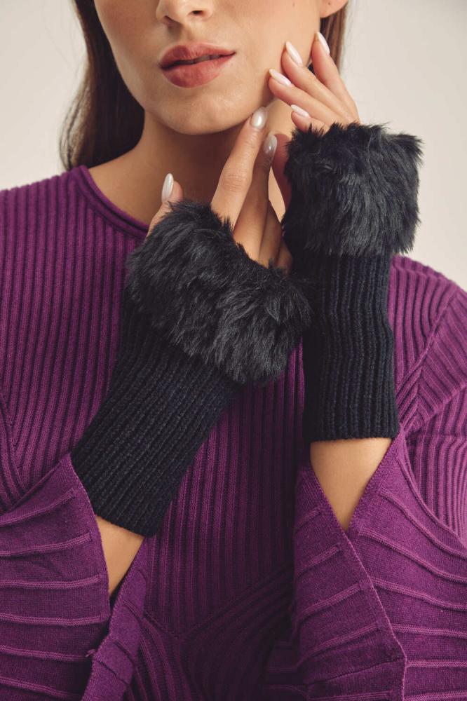 قفازات مكشوفة الأصابع ومزينة بالفرو الإصطناعي ،مثالية لفصل الشتاء والأوقات الباردة، فهي توفر الدفء لكِ وتمنحك لمسة جذابة إلى إطلالتك .