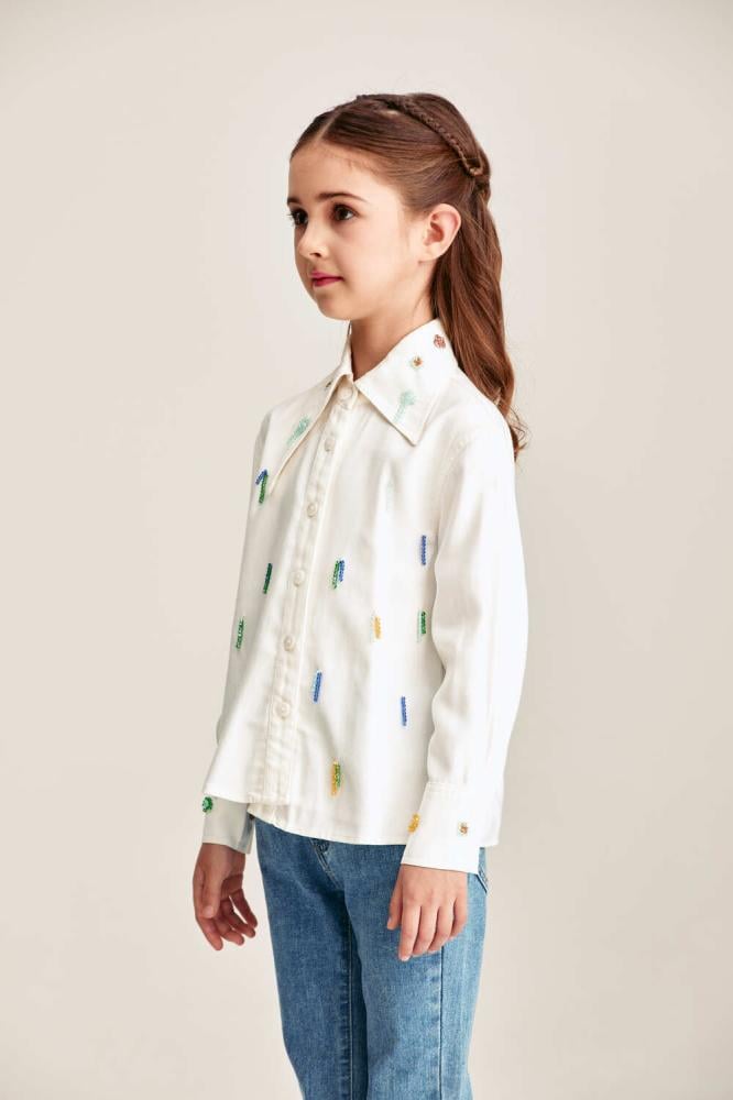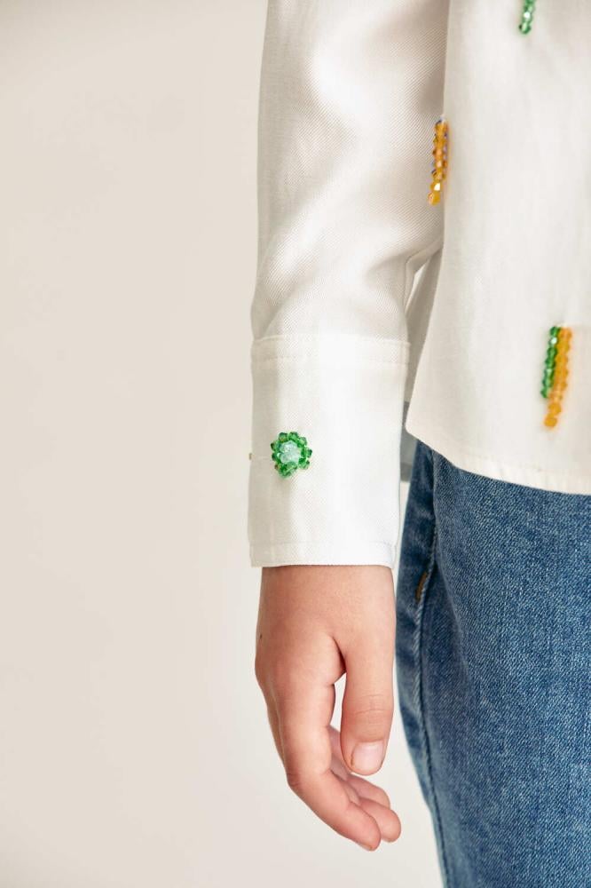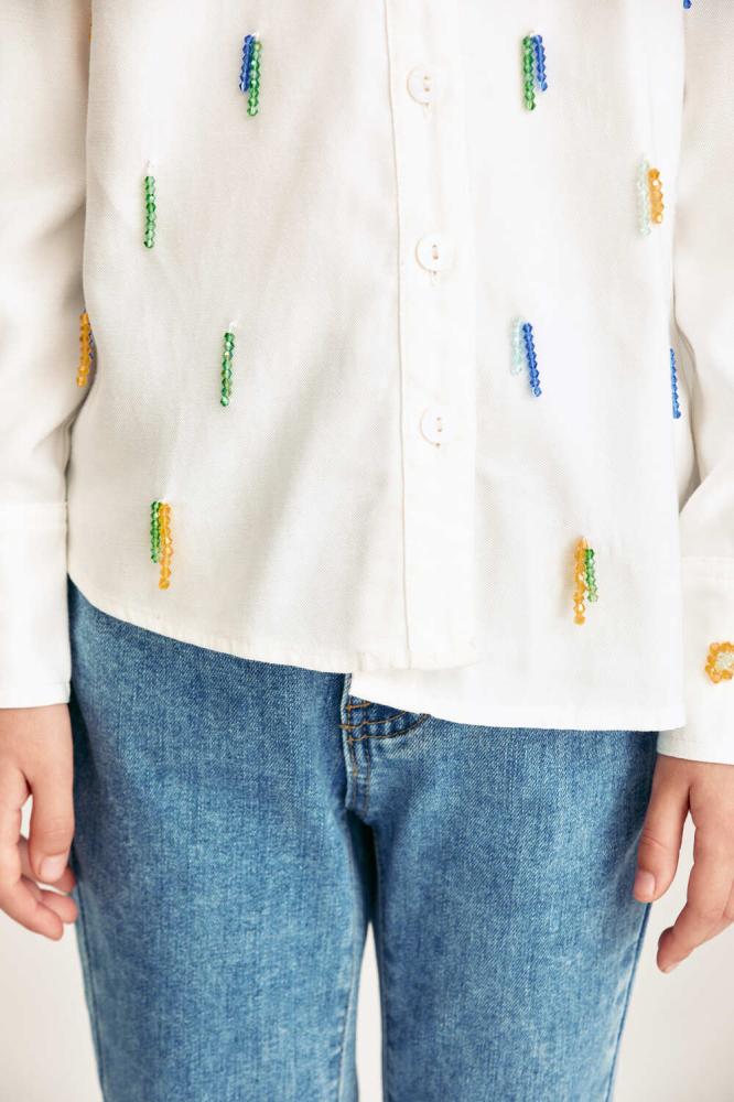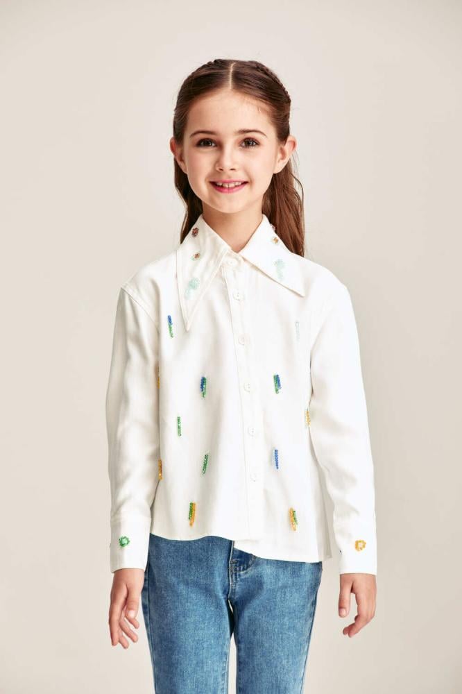 قميص بناتي لصغيرتك مزين بالخرز الملون بتفاصيل مبهجة تضيف لمسة مرحة لإطلالتها اليومية.