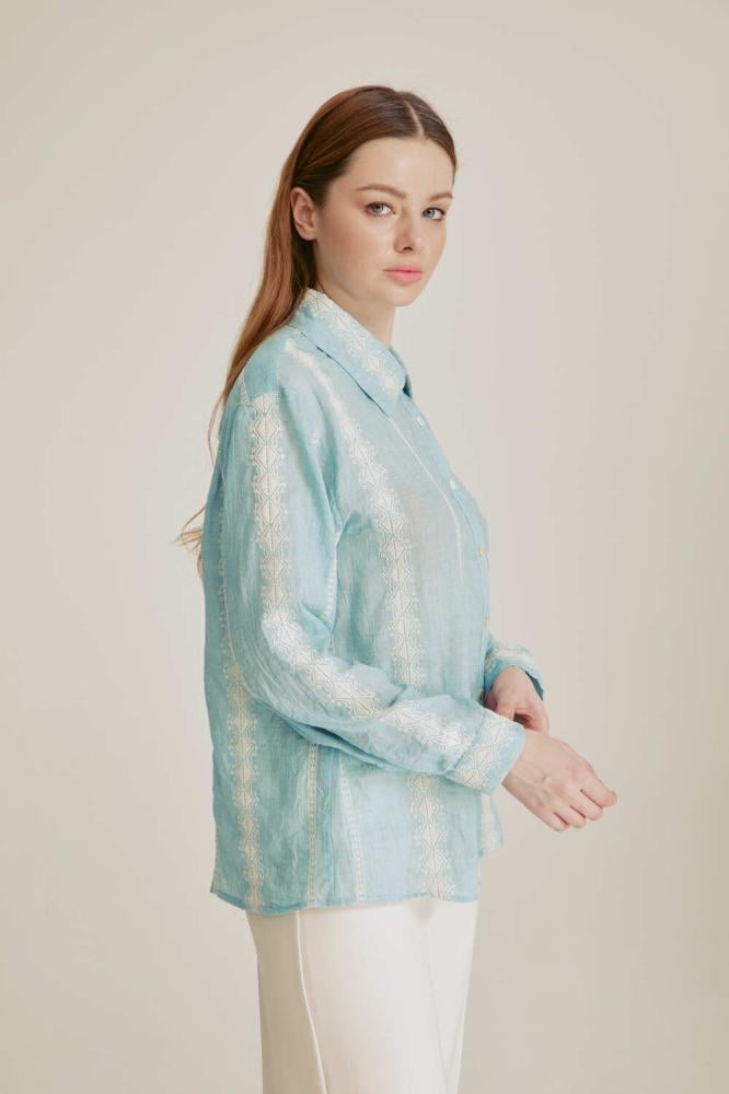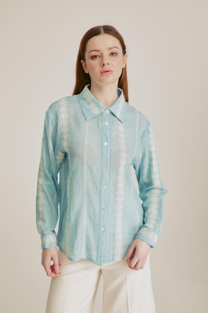أكمام طويلة توفر تغطية كاملة وأناقة، مع إمكانية طيها لإطلالة أكثر راحة وعفوية في الأيام الحارة.