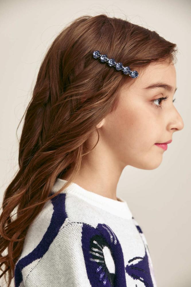 طقم مشبك شعر معدني لصغيرتك بتصميم مزين بأحجار براقة تضيف لمسة ساحرة ومبهجة لتسريحتها. مصمم بدقة ليمنح إطلالتها لمسة من البريق والنعومة، مثالي للاستخدام اليومي والمناسبات الخاصة.