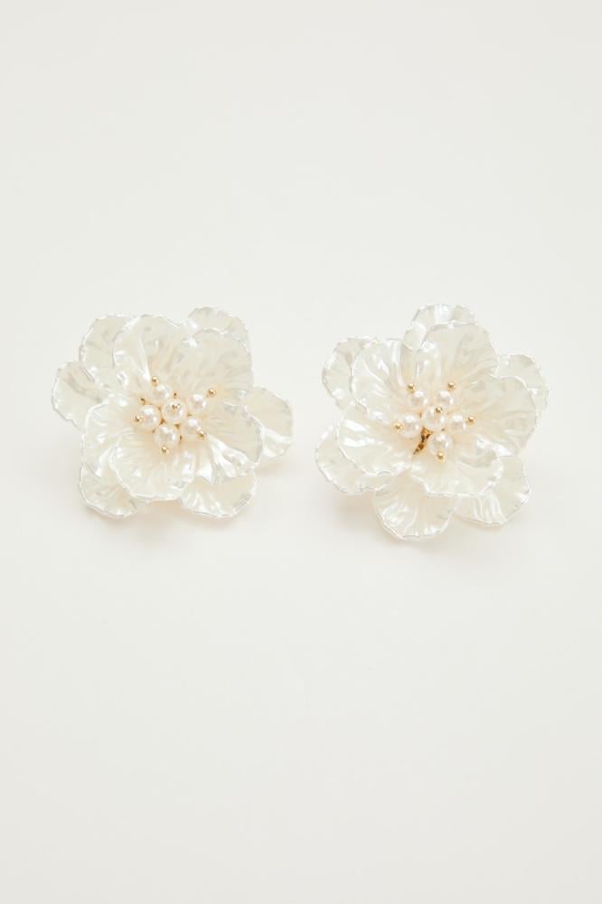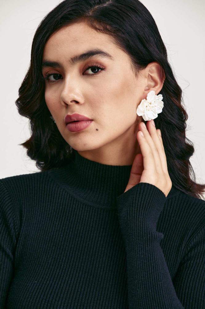 ستصبح هذه الأقراط بتصميم زهرة إضافة رقيقة لامعة إلى إطلالتك، فهي مصنوعة من راتنج لامع ومزينة بالخرز من المنتصف , ويمكنك تنسيقها مع تصفيفة شعر لأعلى وقطع بتصميم بسيط لتبرزي روعة تصميمها المميز.