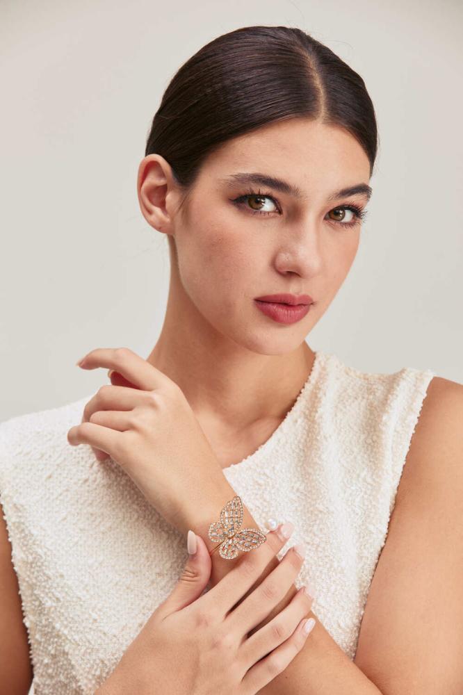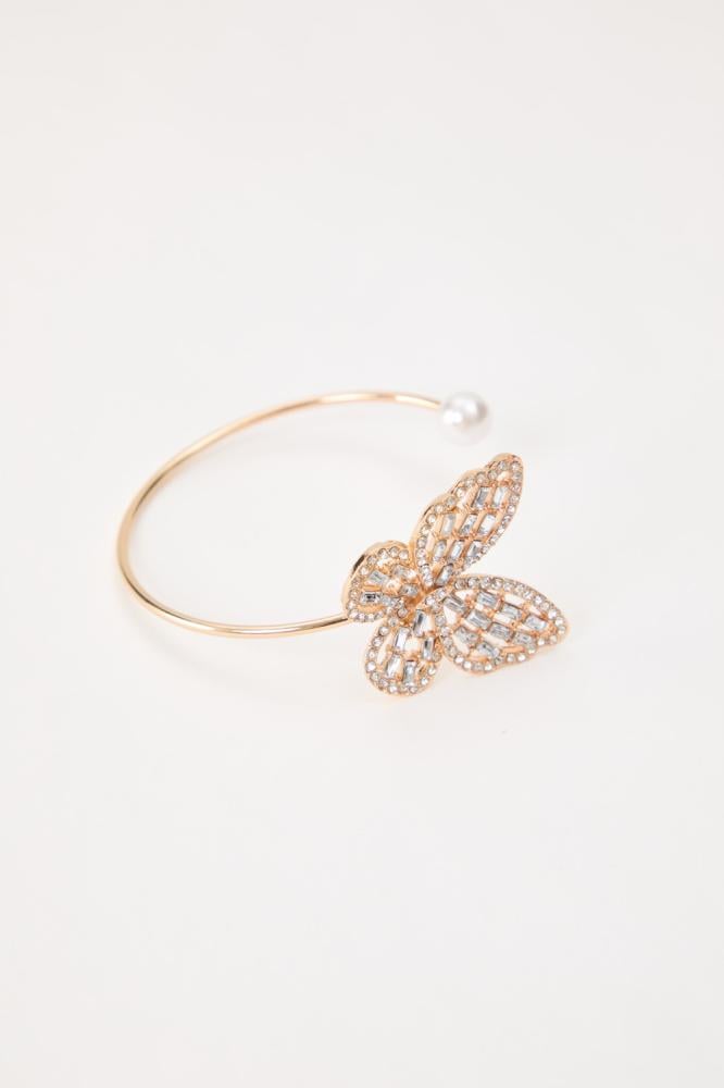 اسوارة بتصميم مفتوح تجمع بين الأناقة والبساطة، مصنوعة من معدن لامع يمنحها مظهرًا عصريًا. يزين الاسوارة فراشة مرصعة بالكريستال البراق، تضفي عليها لمسة فاخرة وجذابة. مناسبة لإطلالات السهرات والمناسبات الخاصة.