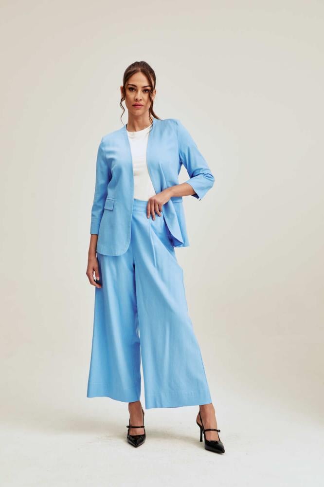 بنطلون عملي بقصّة مستقيمة وواسعة، خصر مطاطي يمنحك راحة مثالية، وجيوب خلفية تضيف لمسة كلاسيكية وعصرية، نسقية مع جاكيت لمظهر أنيق