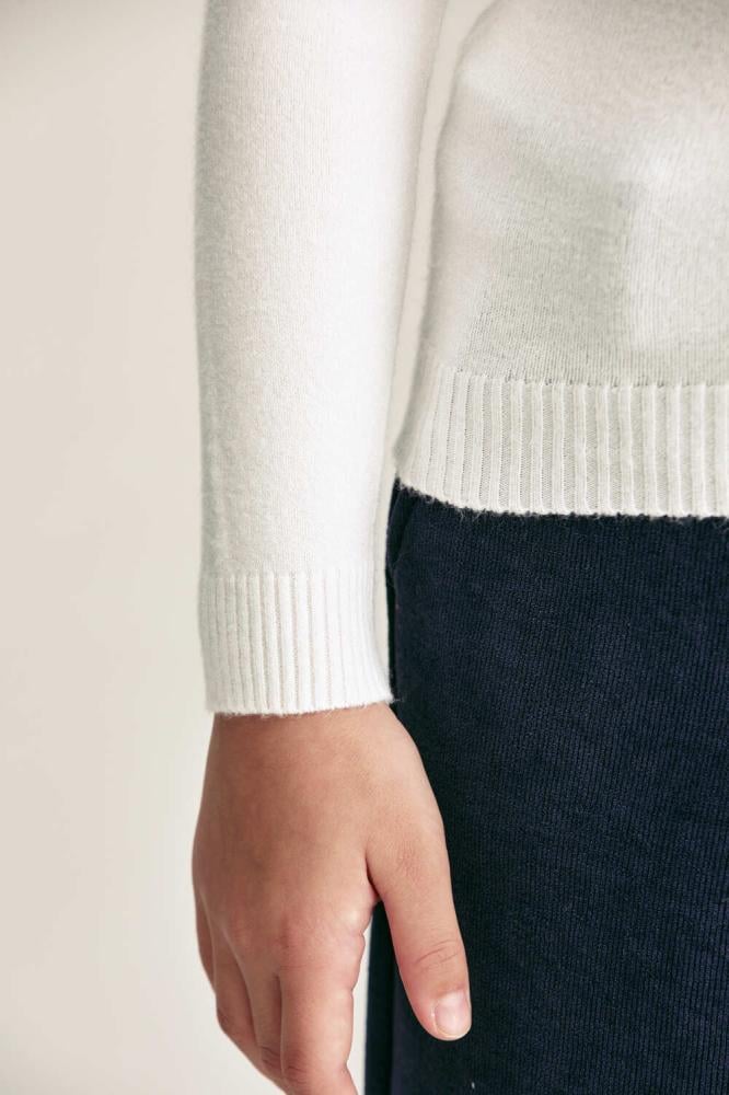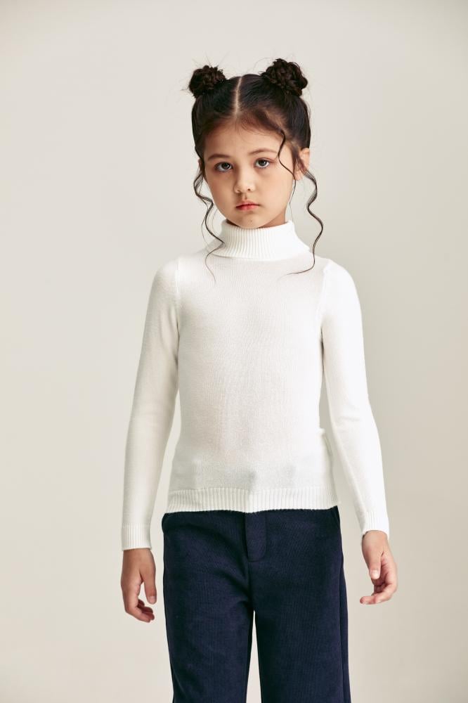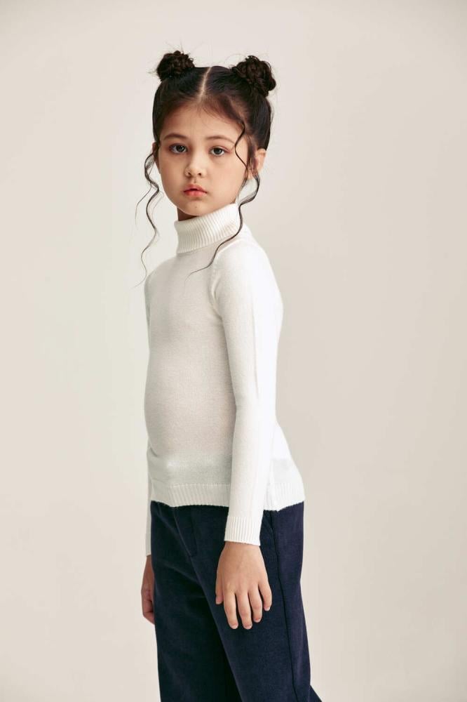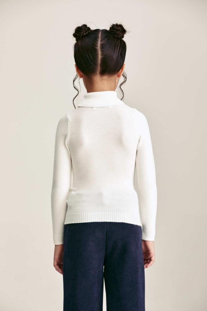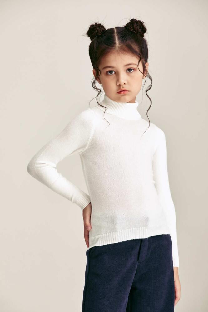 بلوزة بناتية بألوان حيادية مصممة من خامة دافئة ومريحة ، بياقة عالية وبأكمام طويلة ، تمنحها إطلالة أنيقة تجمع بين الأناقة والبساطة، لتكون رفيقة مثالية في الأيام الباردة.
