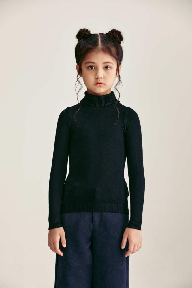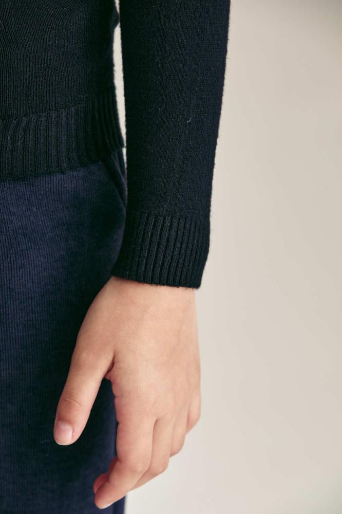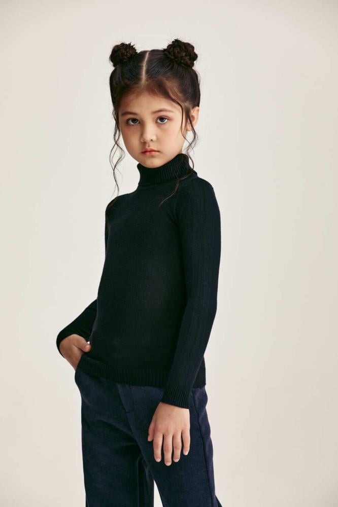 Girls' blouse in neutral colors, designed from a warm and comfortable fabric, with a high collar and long sleeves, giving her an elegant look that combines elegance and simplicity, making it the perfect companion on cold days.