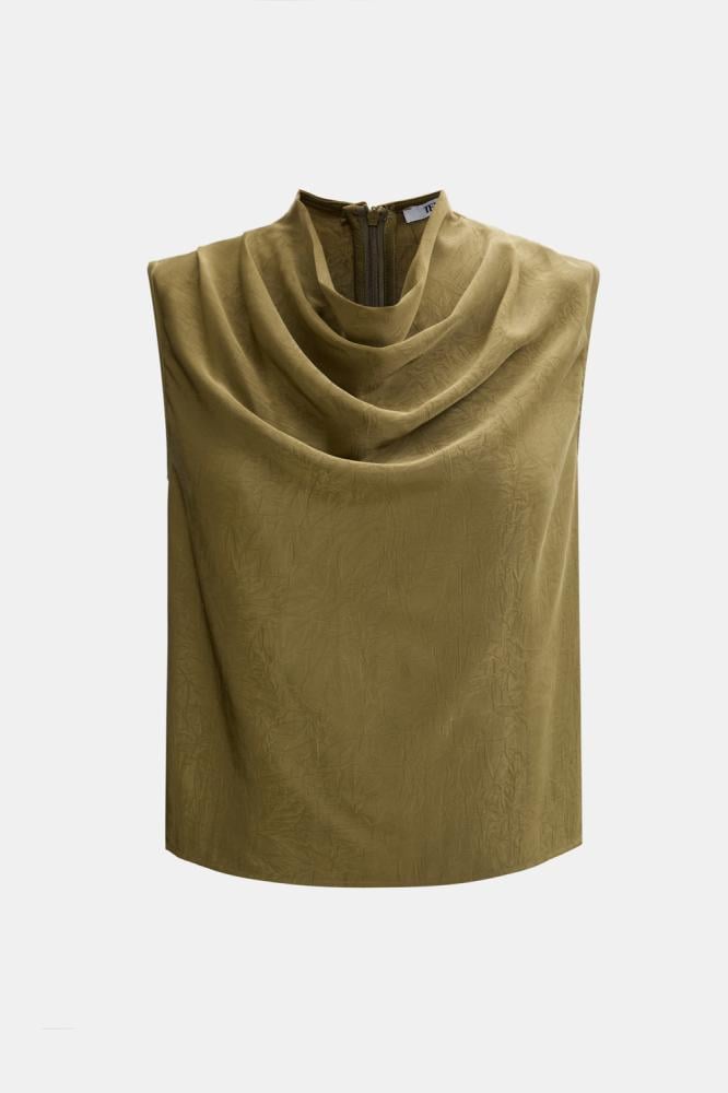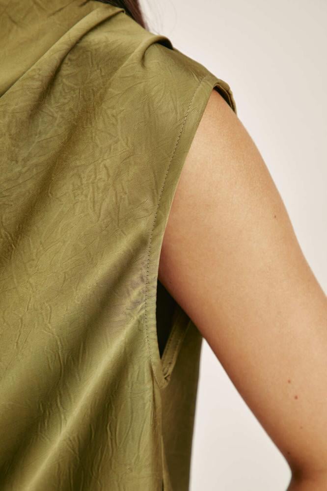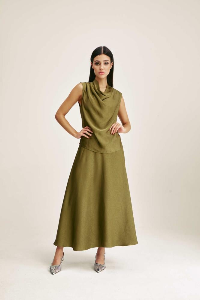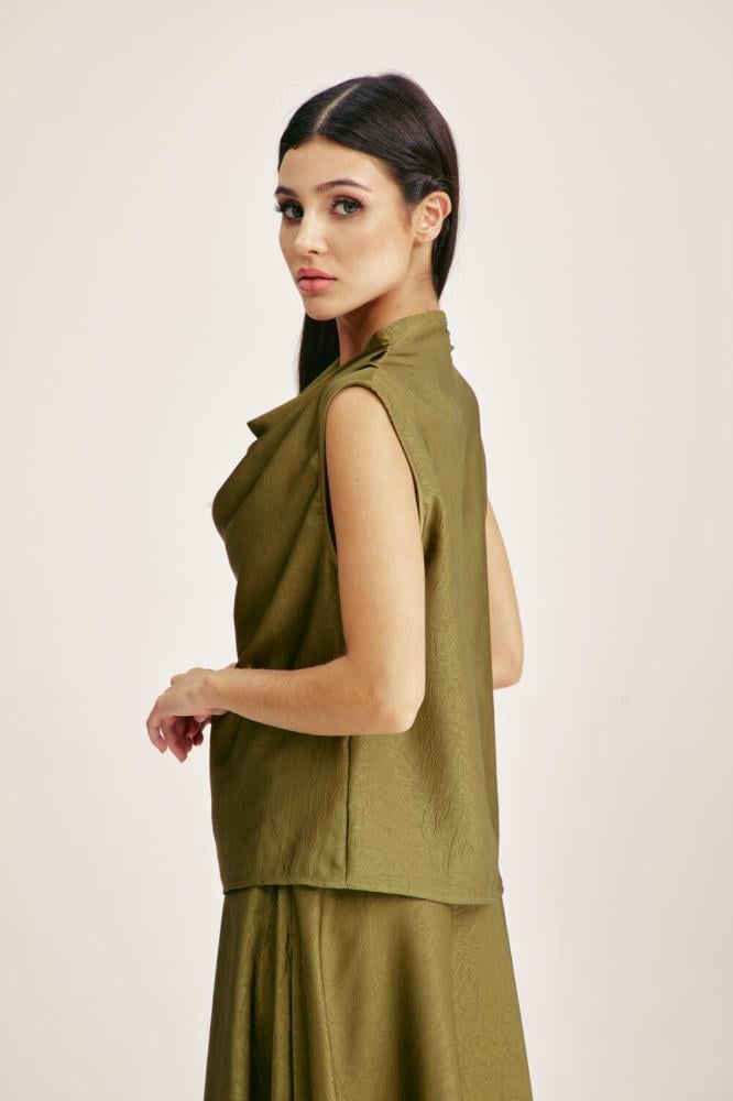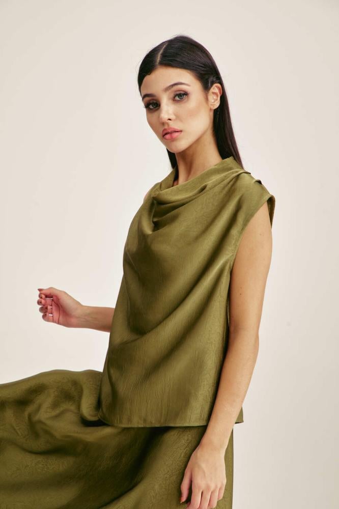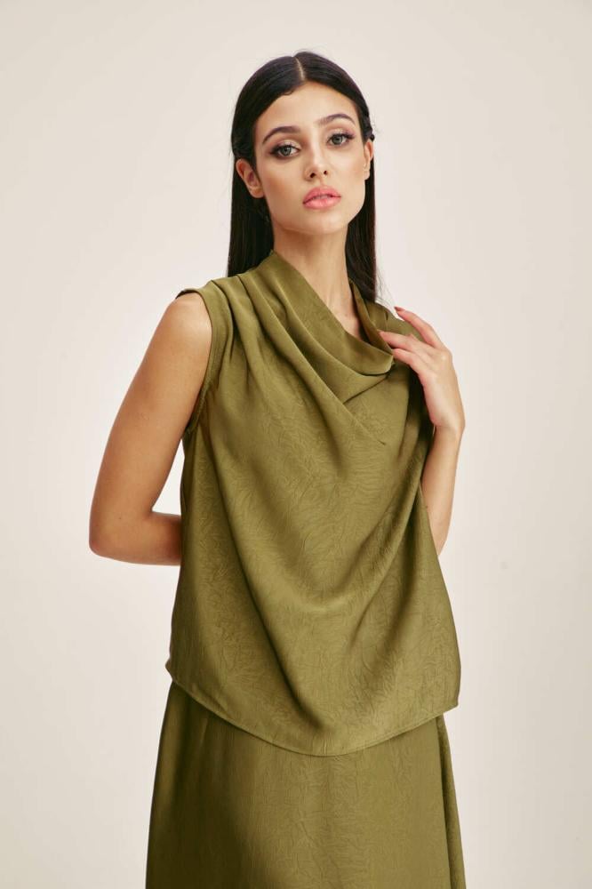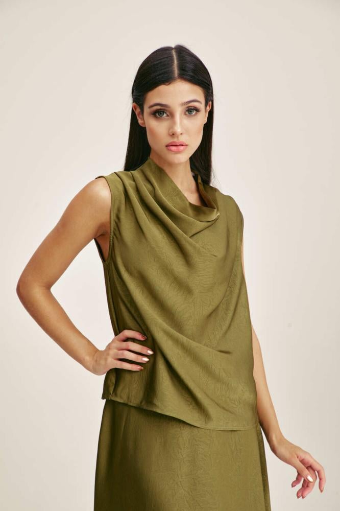 For a comfortable, feminine look, choose a blouse designed with a plunging collar and without sleeves. It comes with a loose, flowing cut. You can coordinate it with a similar skirt for an attractive look.