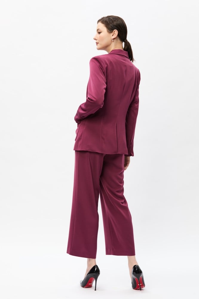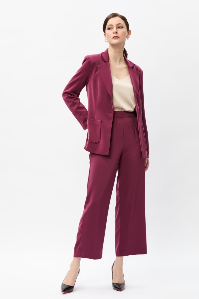 لإطلالة كلاسيكية أنيقة، انتقي بنطلون مصمم بخصر مرتفع وقصة ساقين واسعتين ويأتي بسحاب مخفي للإغلاق يمنحك مظهرًا جذابًا يناسب مختلف الأوقات ، يمكنك تنسيقه مع جاكيت لمظهر أنيق.