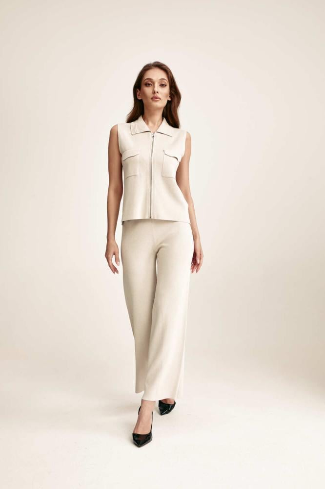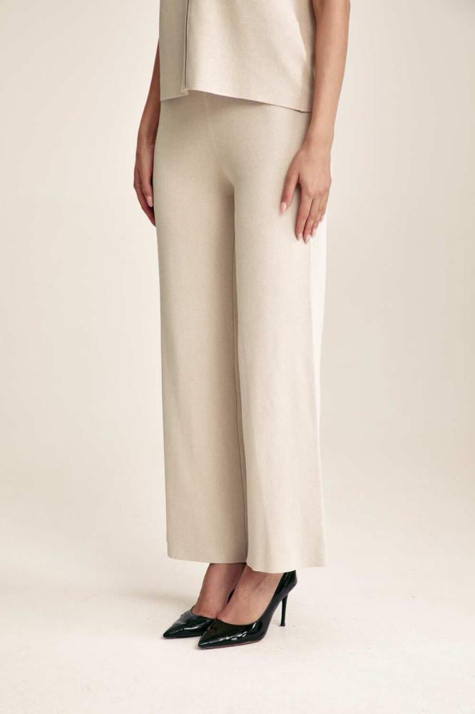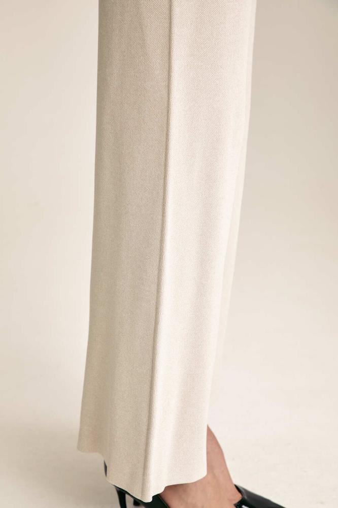 احصلي على إطلالة أنيقة بإرتداء بنطلون محبوك بتصميم بخصر مطاطي وأرجل واسعة ،يمكنك تنسيقه مع بلوزة مماثله للوك عصري