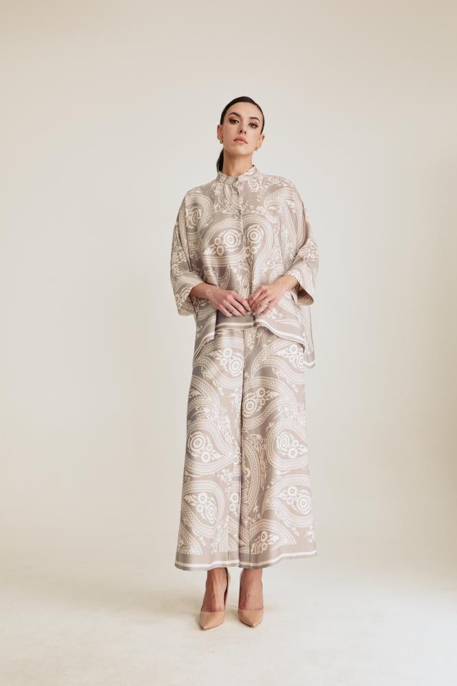 Shine with a look that combines elegance and simplicity with these pants designed with an elastic waist and wide legs, decorated with a paisley pattern. Coordinate it with a blouse in a similar color for a modern look.