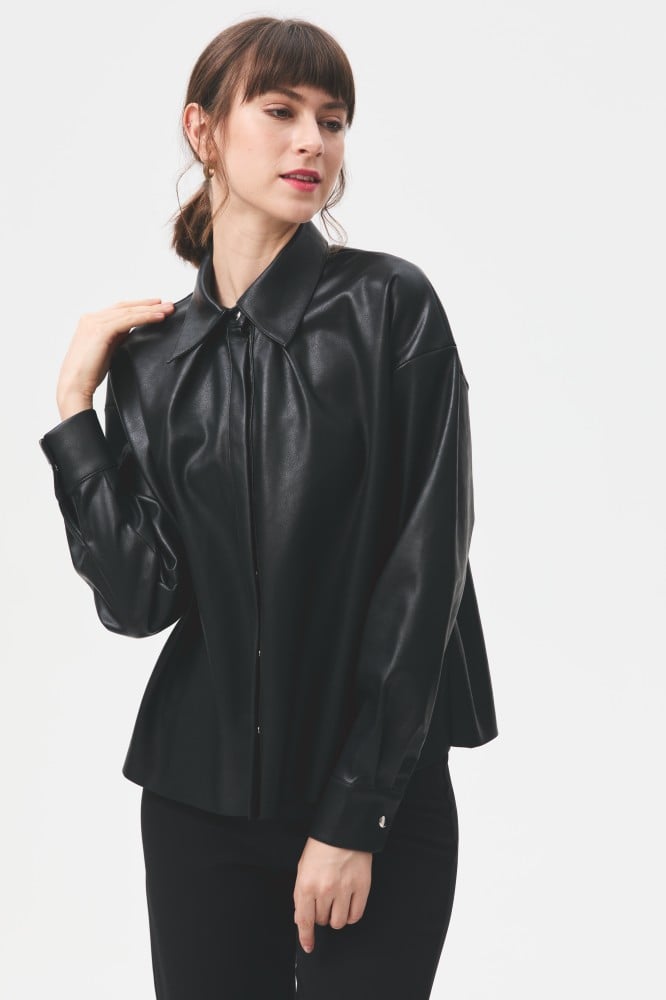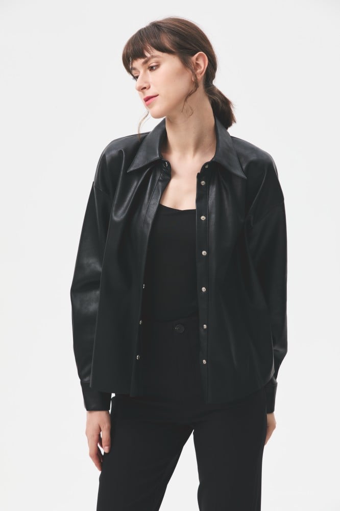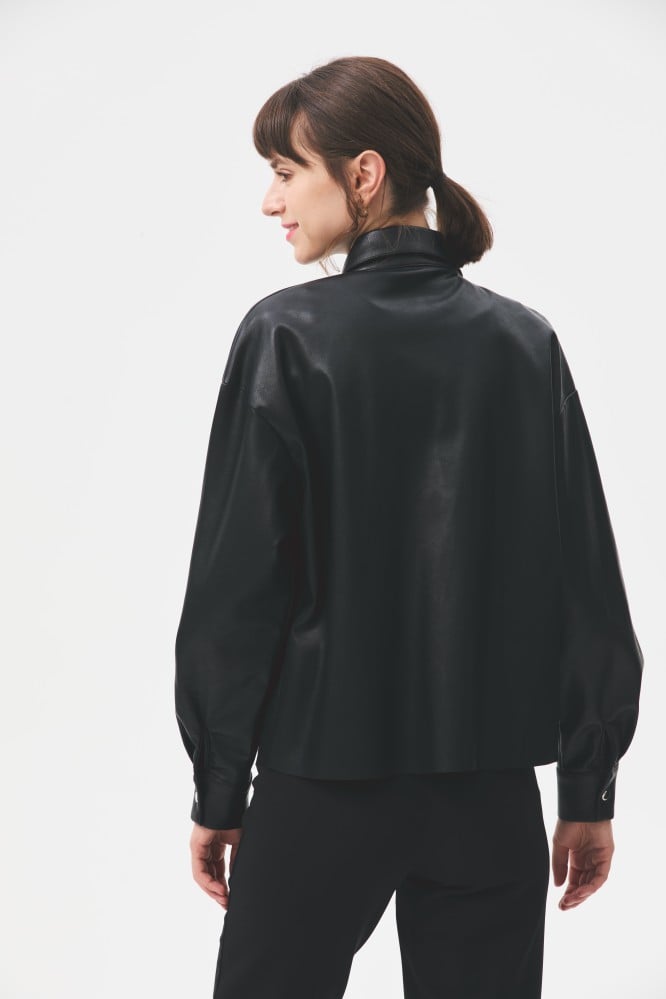 For a classic look with a modern twist, shine in a soft leather shirt with a loose fit and snap buttons for easy wear.