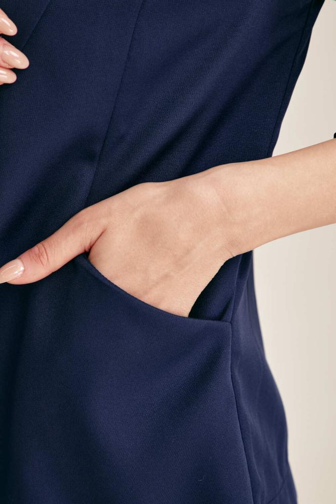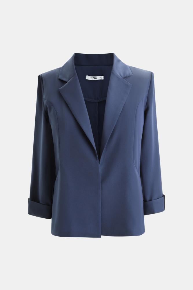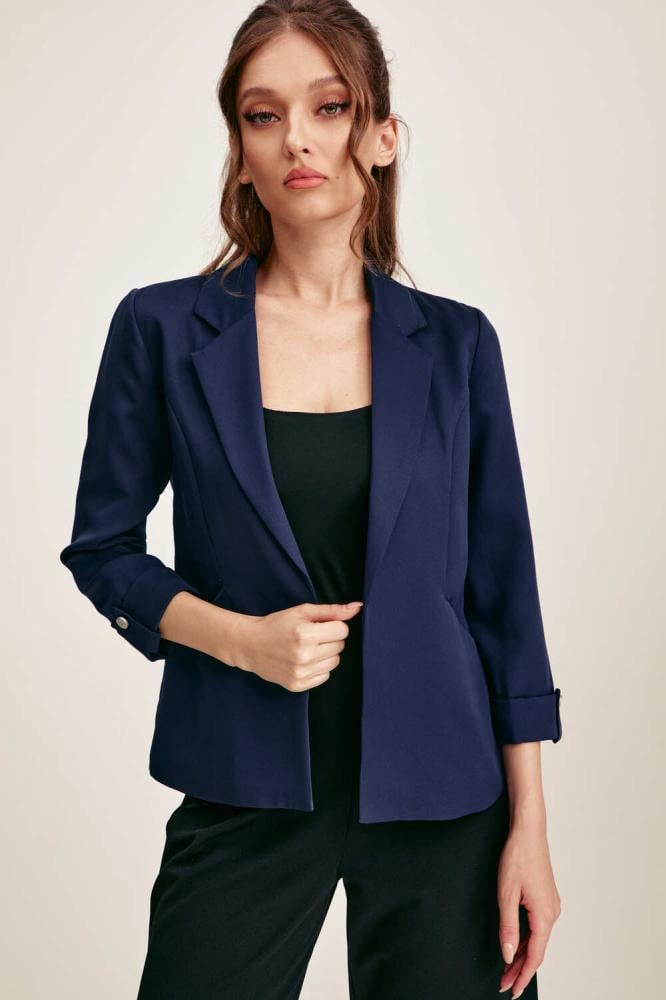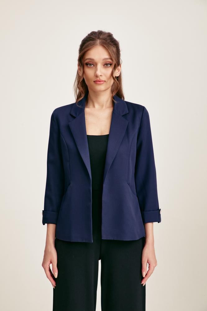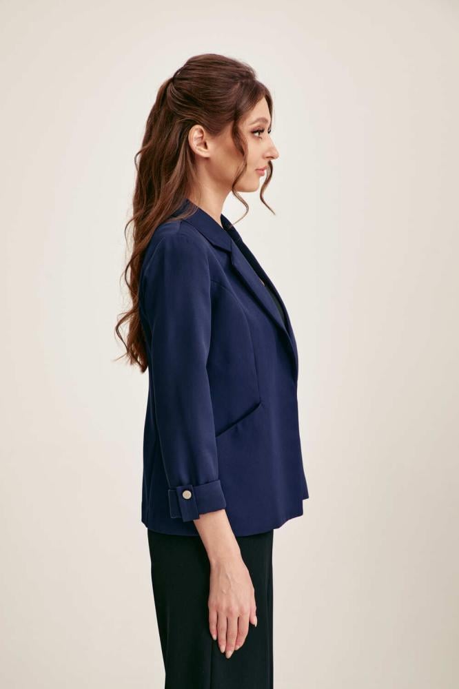 A classic jacket with a perfect design for a smart office look. Designed with pockets, it features a lapel collar and medium-length sleeves with a pleat. Pair it with a skirt for a smart look at business meetings.