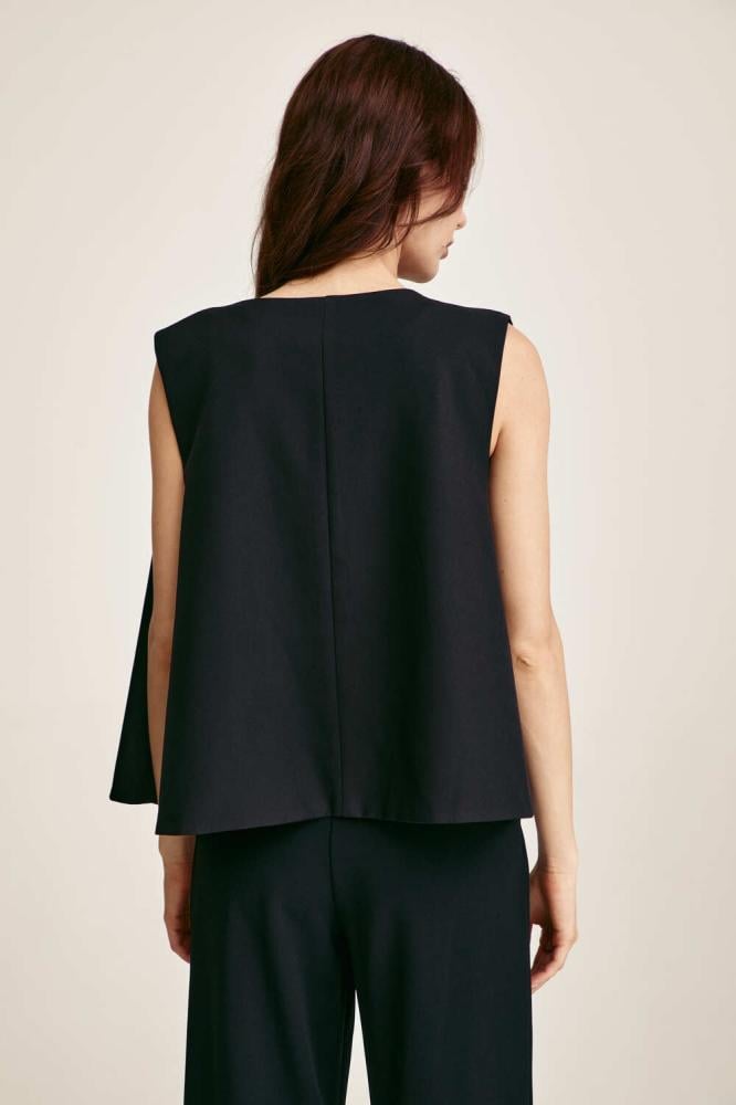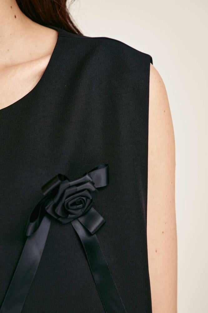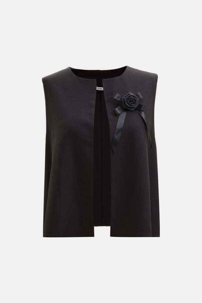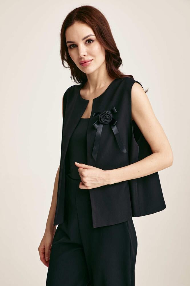 جاكيت فيست بلا أكمام مصمم ليجمع بين الأناقة والعملية ، بقصة واسعة مفتوحة من الأمام تضفي لمسة متقنة ومزين ببروش على شكل وردة . مثالي للدوام والمناسبات الرسمية، يمكنك تنسيقة بسهولة مع تنورة مماثلة لإطلالة مكتبية راقية ومريحة طوال اليوم.