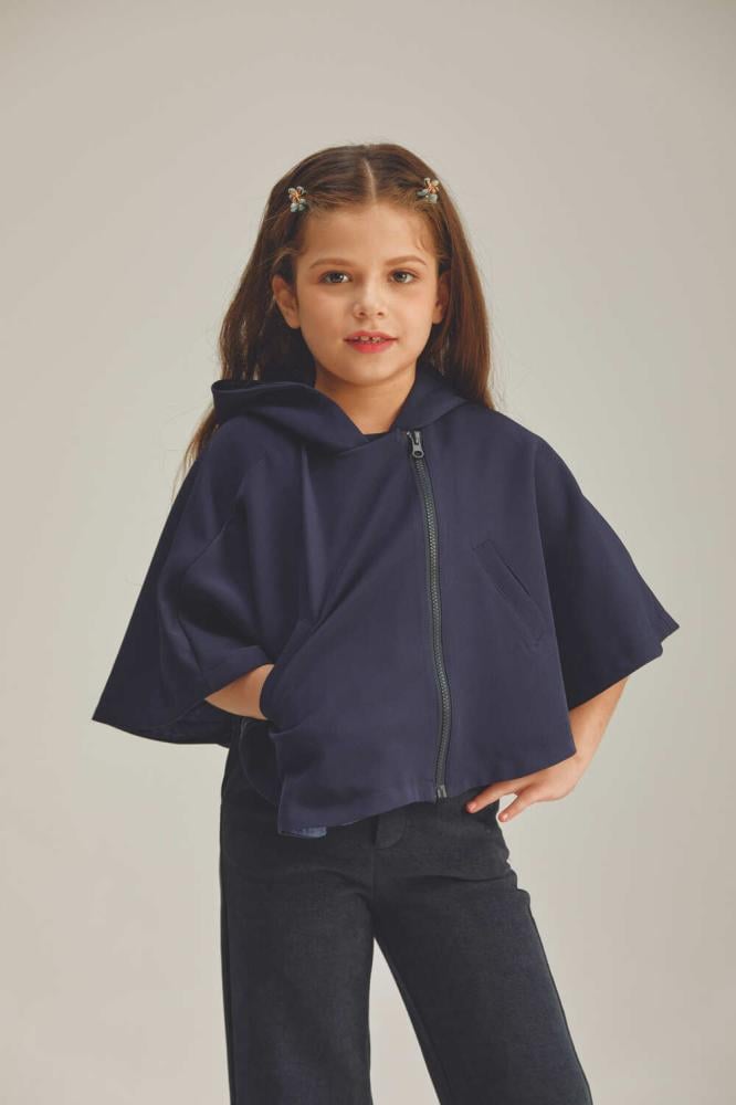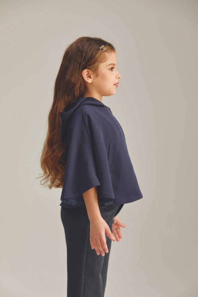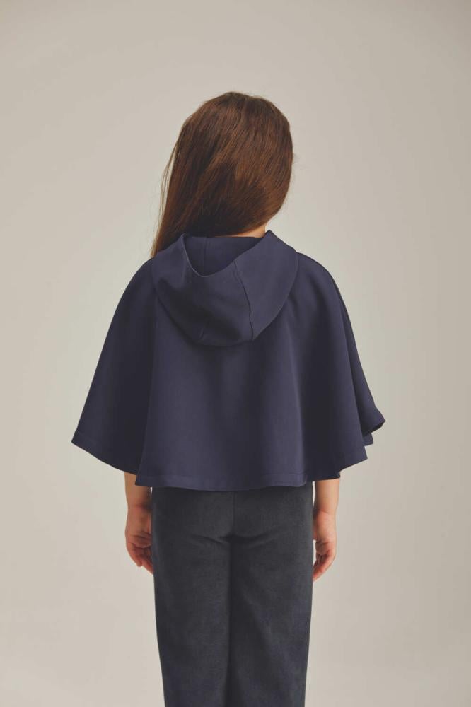 This cape jacket for your little one is perfect for cold winter days! Lined with soft faux fur for warmth and a luxurious touch, it features a collar and hood to protect her from the cold. It features practical pockets and a stylish side zipper for a warm and stylish look.