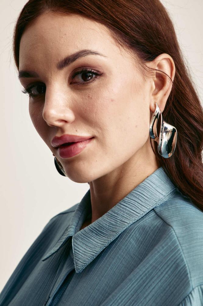 أقراط متدلية بتصميم منحوت معدني لامع ، تمنحك إطلالة جريئة وعصرية تناسب المناسبات والإطلالات المميزة.