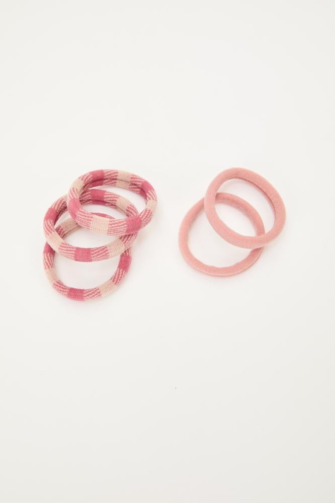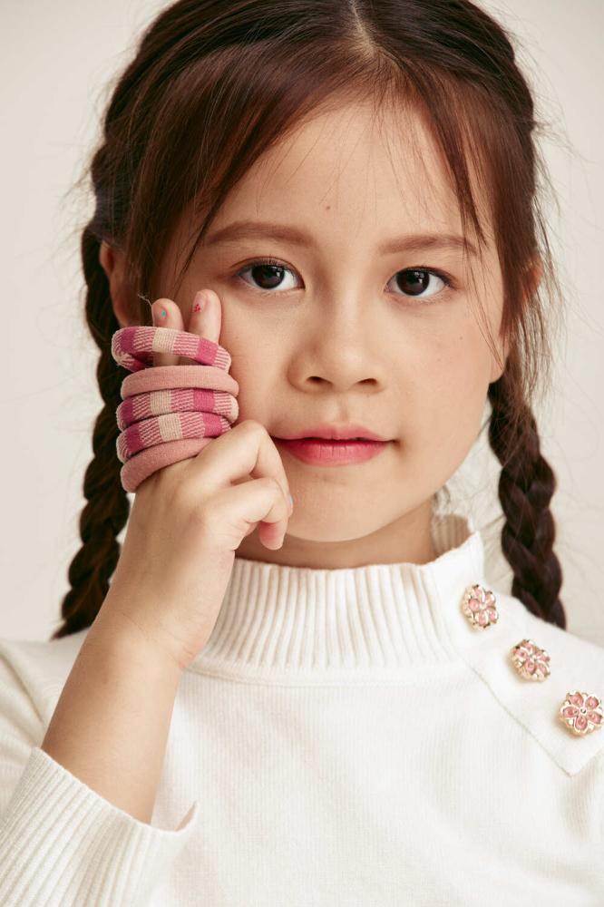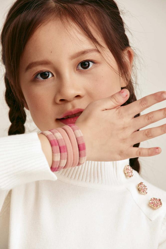 A set of 5 elastic hair ties for your little one, practical and flexible, ensuring perfect hold without pressure, in a variety of colors to suit every look.