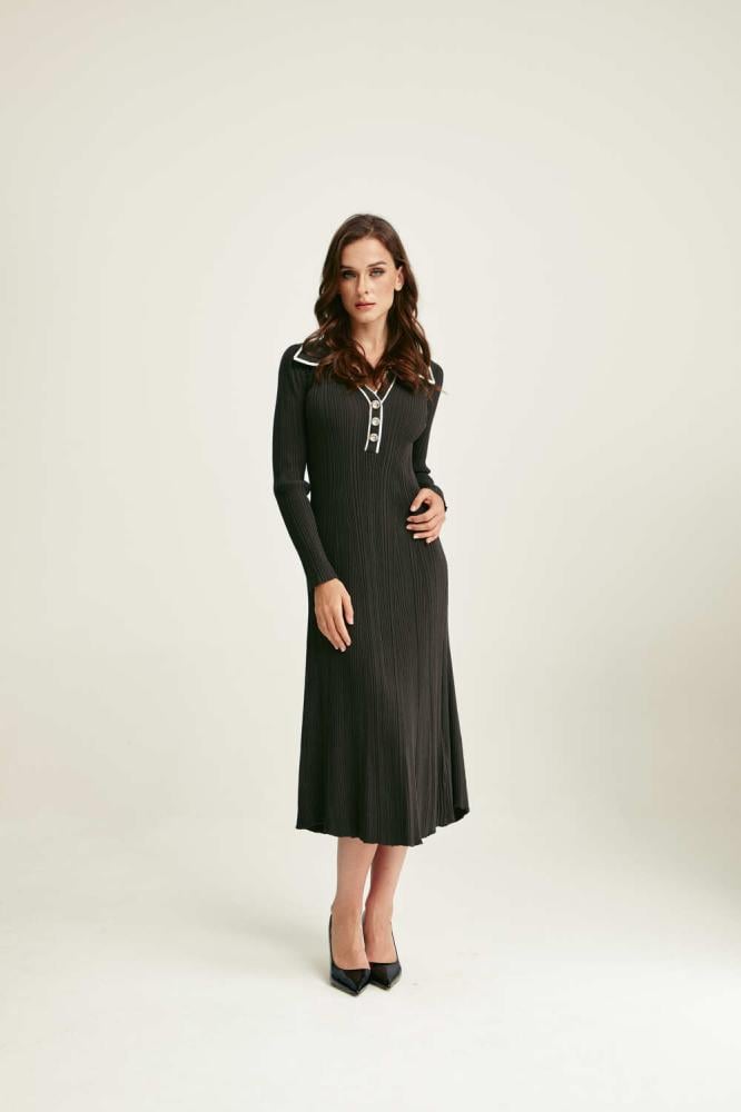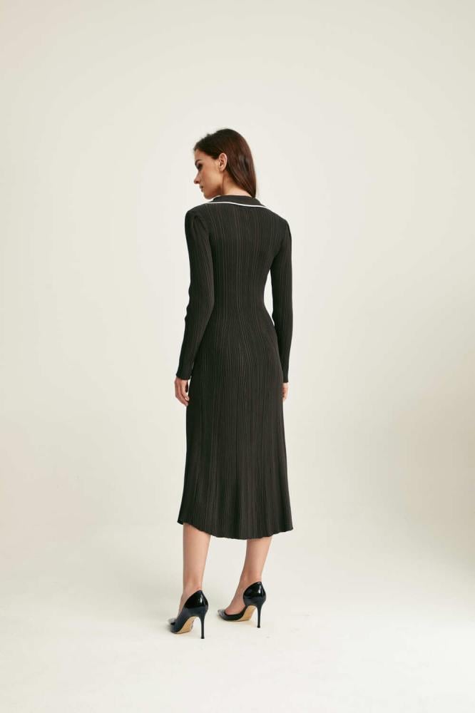 Choose this attractive dress for an elegant look, designed with a polo collar, long sleeves, button closure, and a cut that highlights the beauty of your body.