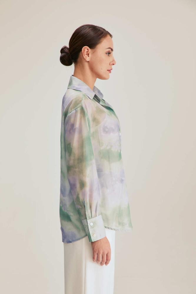 Classic fit shirt with distinctive prints, a loose fit, and long sleeves. Pair it with a skirt for a bright and eye-catching look.