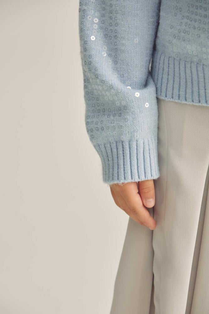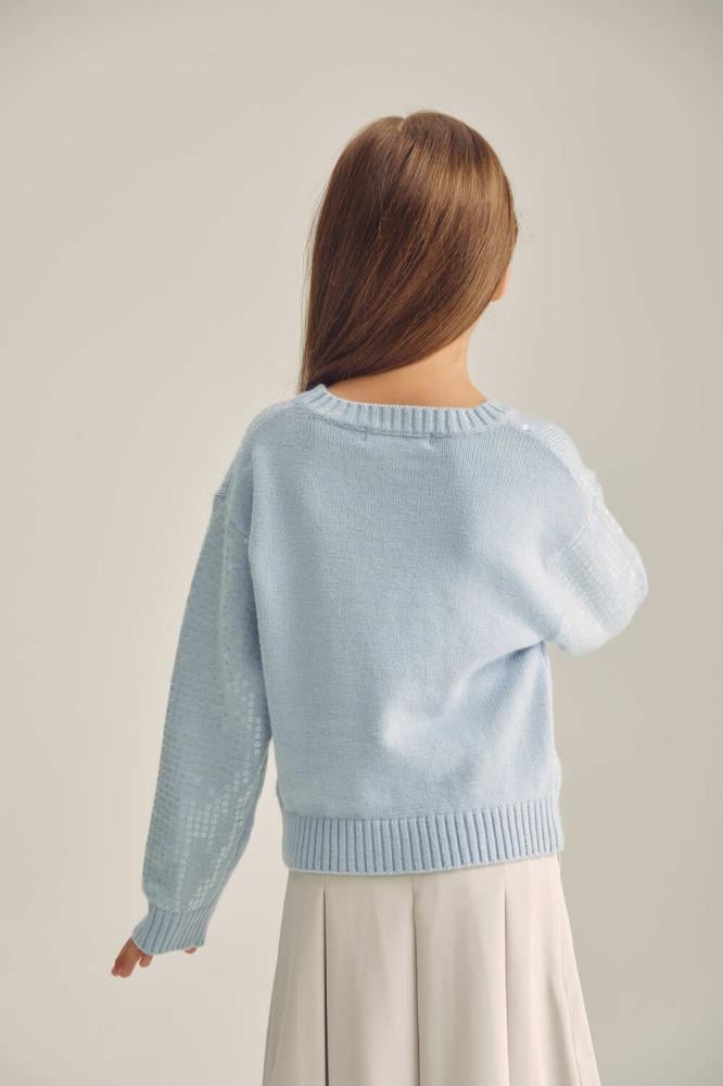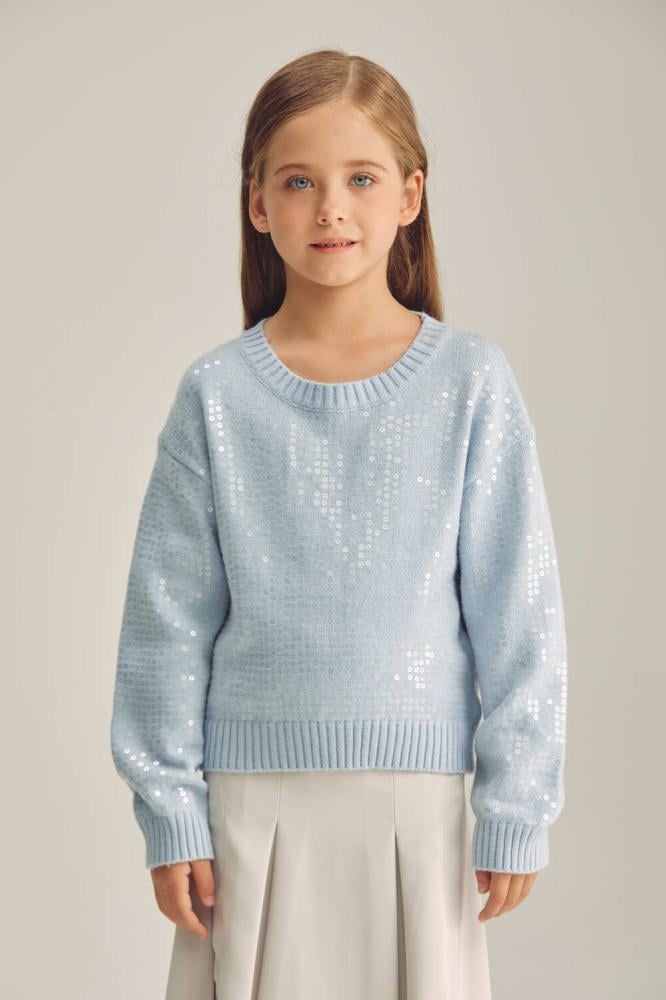 Give your little one a distinctive look with this loose, off-the-shoulder sweater, embellished with glittering sequins for an eye-catching sparkle. A comfortable and elegant design combines warmth and elegance for the winter season. Perfect for casual or formal looks, it offers optimal comfort all day long.