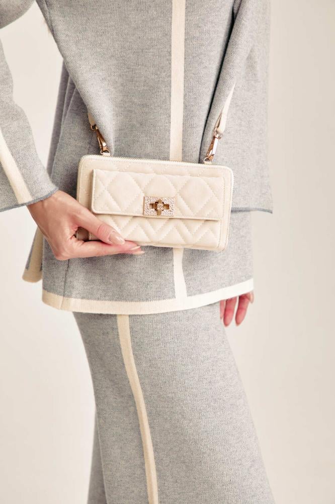• The bag has a stylish, modern design that adds a touch of elegance to your look.