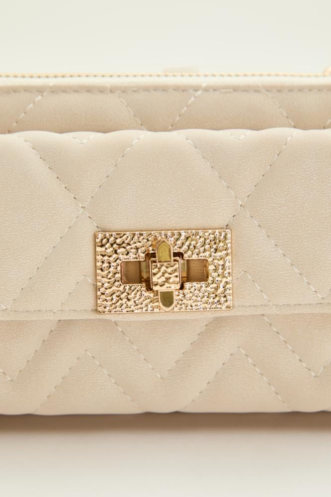 This crossbody bag from Sunbul features a sleek, geometric design with prominent details that give it a sophisticated feel. It's expertly crafted to combine practicality with appeal. It comes with a stylish outer pocket and a luxurious metal buckle closure, adding a touch of luxury to the design. The distinctive strap allows you to easily carry it over your shoulder, providing comfort and elegance in one.