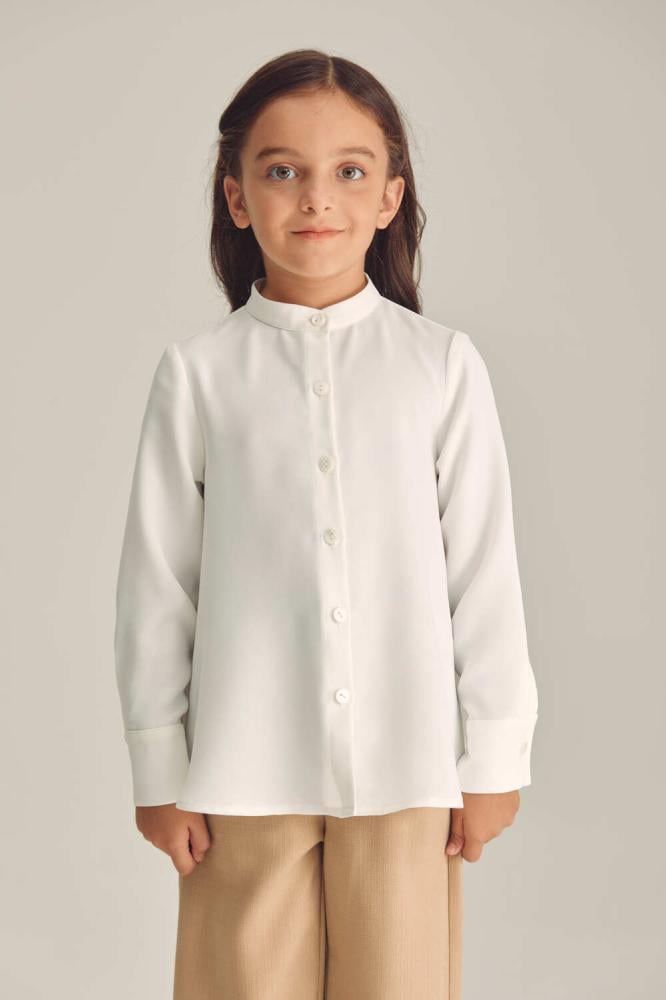 Redefine school elegance with a girls' white shirt from Sunbul. Combining a simple design with superior quality, it's more than just a basic piece; it's an expression of the good taste and comfort your little one deserves. With its modern collar and natural cotton, it'll give your little one a well-groomed look and a feeling of confidence and comfort that lasts all day.