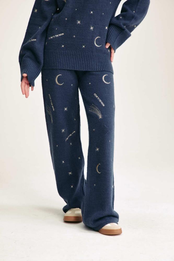 Knitted with attractive patterns, elasticated waist for comfort and ease of movement, and wide legs for a stylish and versatile look. Can be coordinated with a similar blouse or sweater.