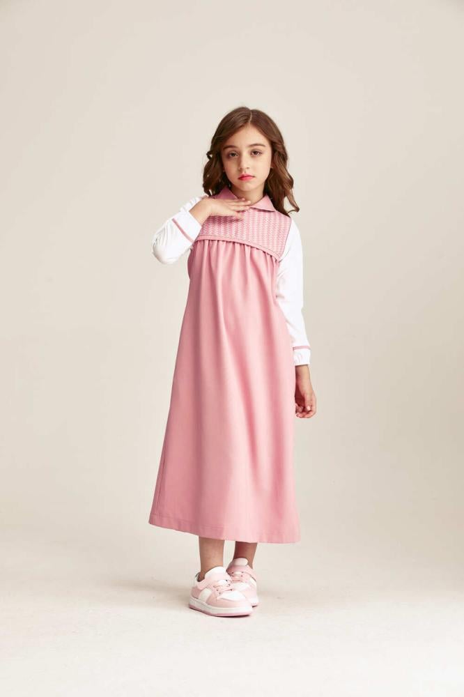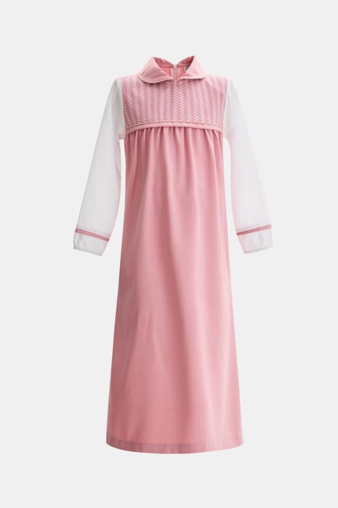 • Spacious design with pockets and a collar with embroidered details, with a back tie for easy size adjustment